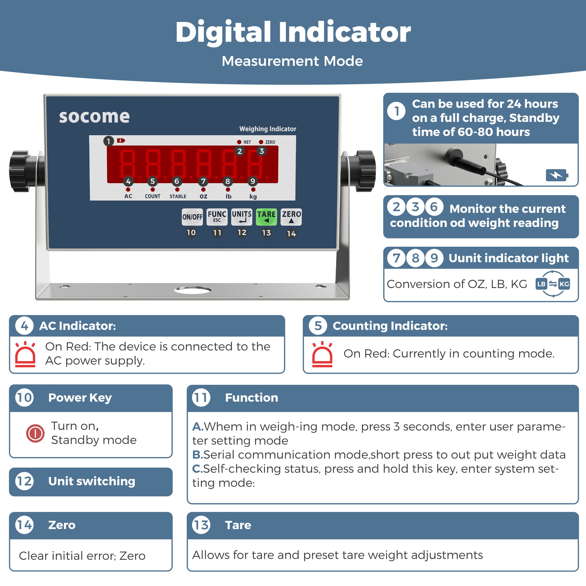 - Simple Setup and Care: The package includes a display charger, sensor cable, communication cable, four feet, and screws. Given its weight, we recommend that two people lift it to avoid damaging the product. Keep the scale remains level during use to protect the weighing components. We can assist you with the replacement and maintenance of weighing components. Additionally, the dashboard has a threaded lifting eye bolt hole, allowing for optional bracket attachment if needed.