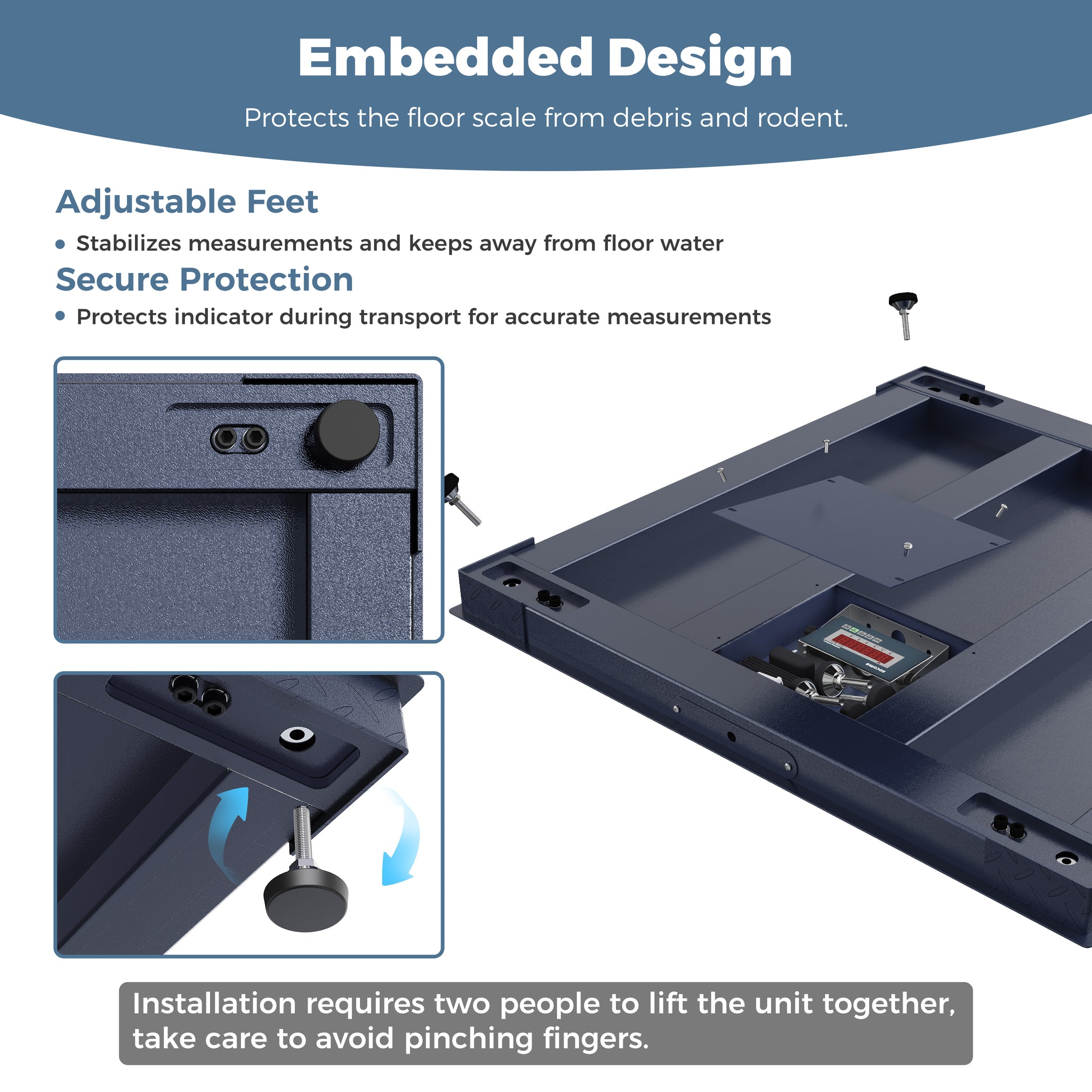 - Efficient Installation and Maintenance: The package includes a display charger, sensor cable, communication cable, four feet, and screws. Given its weight, we recommend that two people lift it to avoid damaging the product. Keep the scale remains level during use to protect the weighing components. We can assist you with the replacement and maintenance of weighing components. Additionally, the dashboard has a threaded lifting eye bolt hole, allowing for optional bracket attachment if needed.